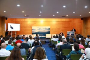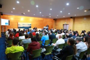 D. José Luis Guersi Sauret, representante del Centro Tecnológico de Ciencias Marinas CETECIMA y D.Octavio Llinás González, representante de Plataforma Oceanica Plocan PLOCAN, en la presentación de Acuicultura oceánica en el II Foro Gran Canaria de Economía Azul.